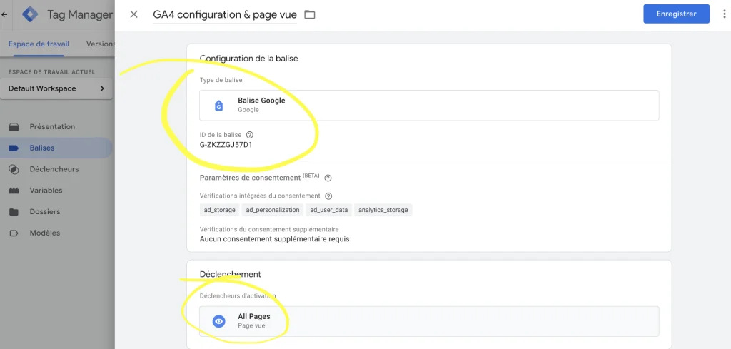 Configuration de Google Tag Manager.